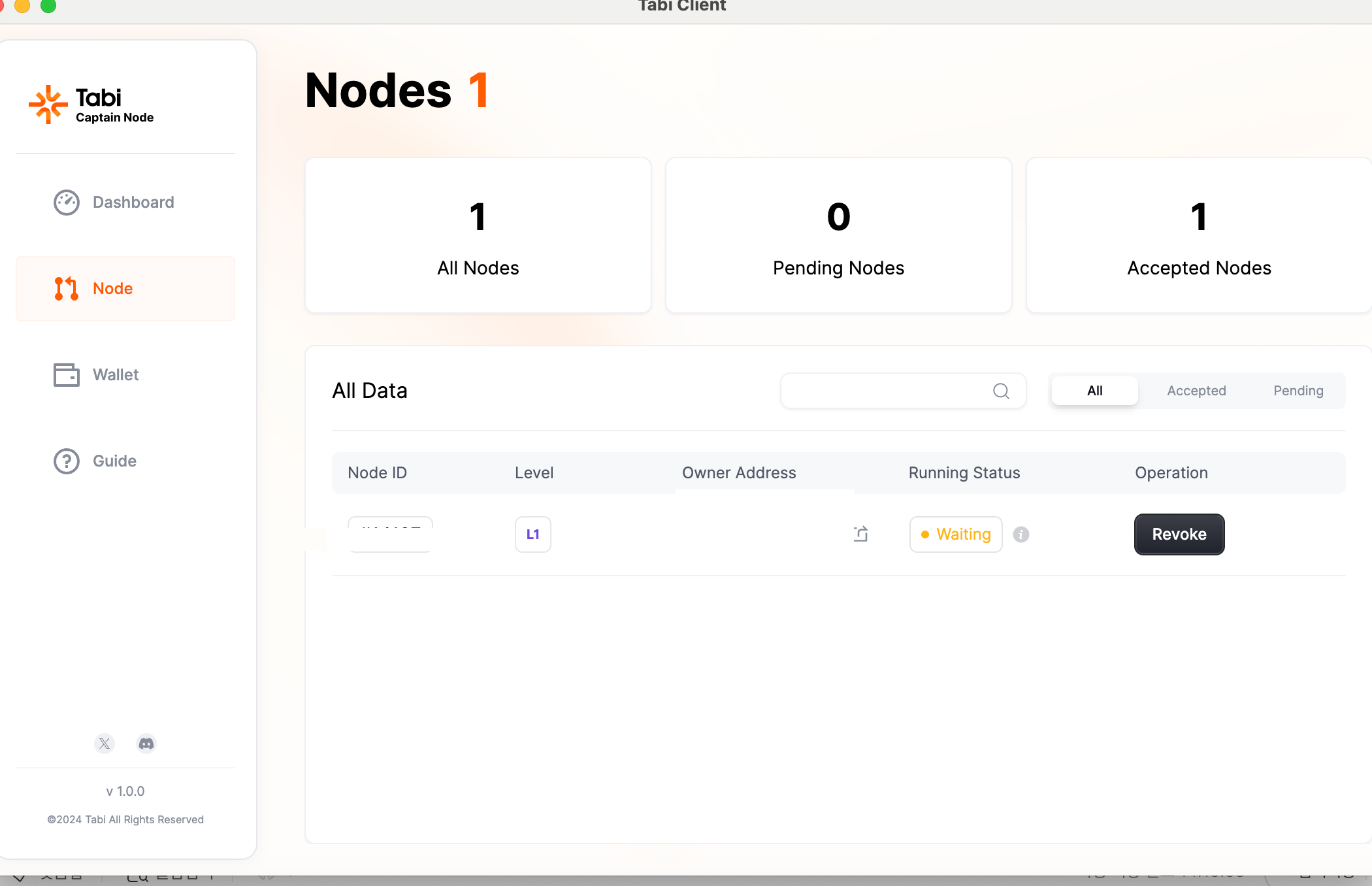 항목위에 NODE 누르시고, Assign 입력하시면, 지갑주소 입력하는 창이 뜹니다. 거기서 아까 타비노드 프로그램에서 만들었던 지갑주소 입력하시며녀 됩니다.