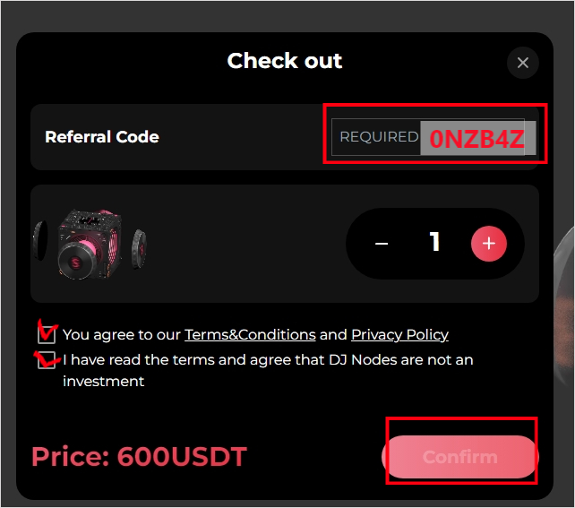 Referral code에 입력을 하고, 0NZB4Z